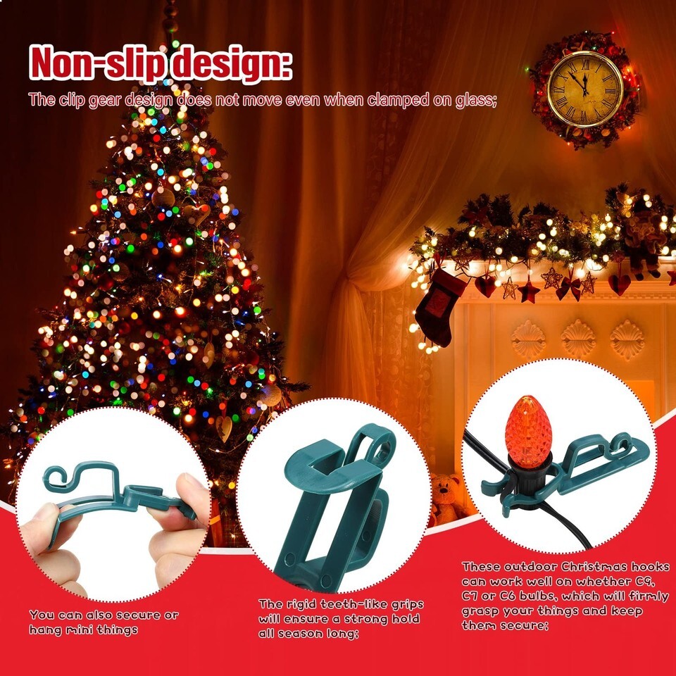Non-slip design: the clip gear design does not move even when clamped on glass; The rigid teeth-like grips will ensure a strong hold all season long; These outdoor Christmas lights hooks can work well on whether C9, C7 or C6 bulbs, which will firmly grasp your lights and keep them secure; You can also secure or hang mini lights