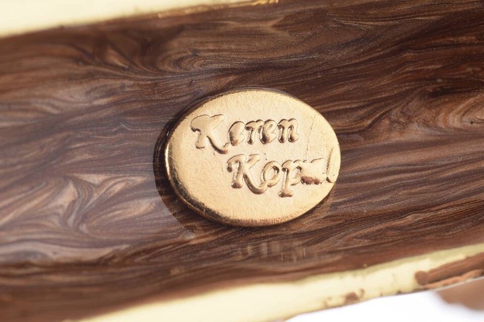 Chaque piece porte la signature de l'artiste Keren Kopal sur une plaque metallique, en gage d'authenticite.