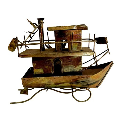 - Boat Water Mill Handmade C1960-70 MCM Antique Metal Nautical Music Box SS