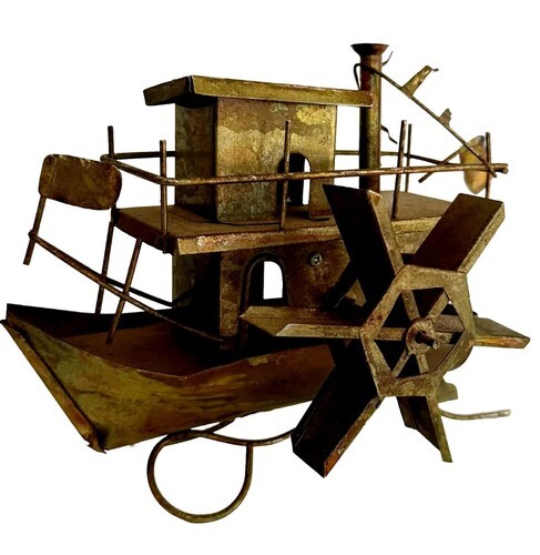 Boat Water Mill Handmade C1960-70 MCM Antique Metal Nautical Music Box SS