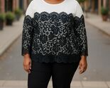 Keywords: Bob Mackie, Wearable Art, Lace Top, Blouse, Long Sleeve, Cream, Black, Elegant, Plus Size, 2X, Knit Top, Designer Blouse, Evening Wear, Special Occasion