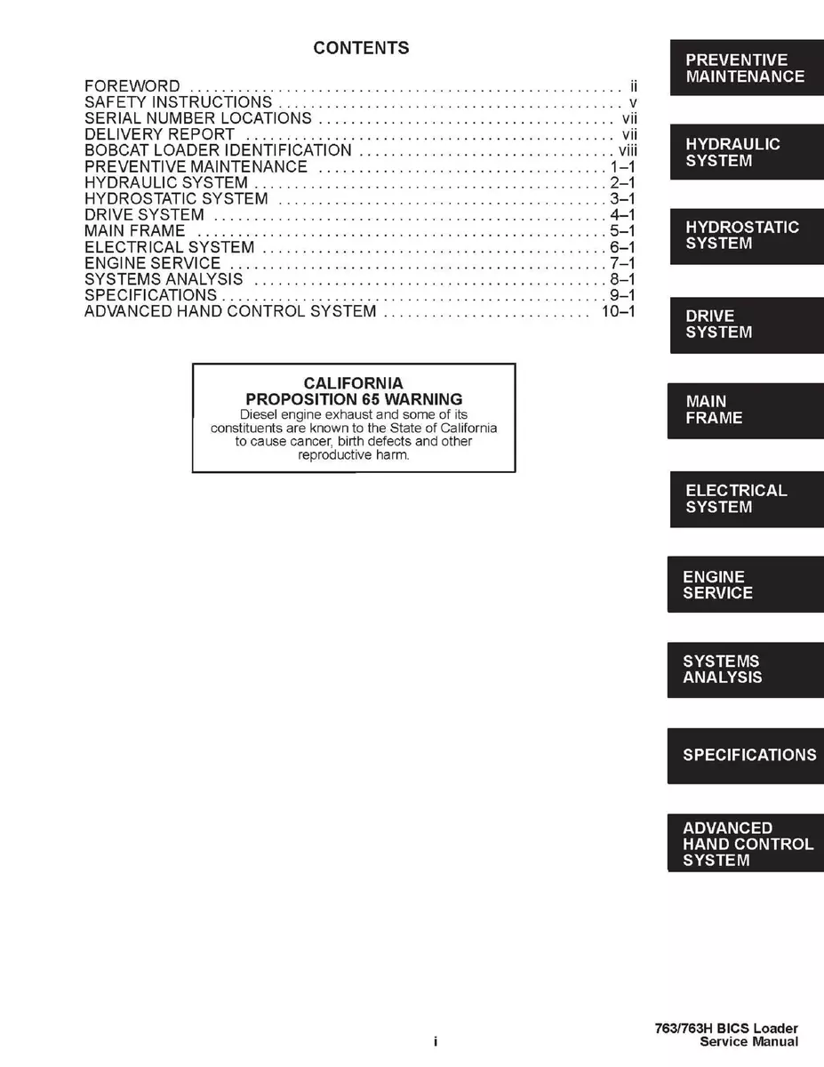 Bobcat - 763 HIGHFLOW Skid Steer Loader Technical Repair Manual SN512212001