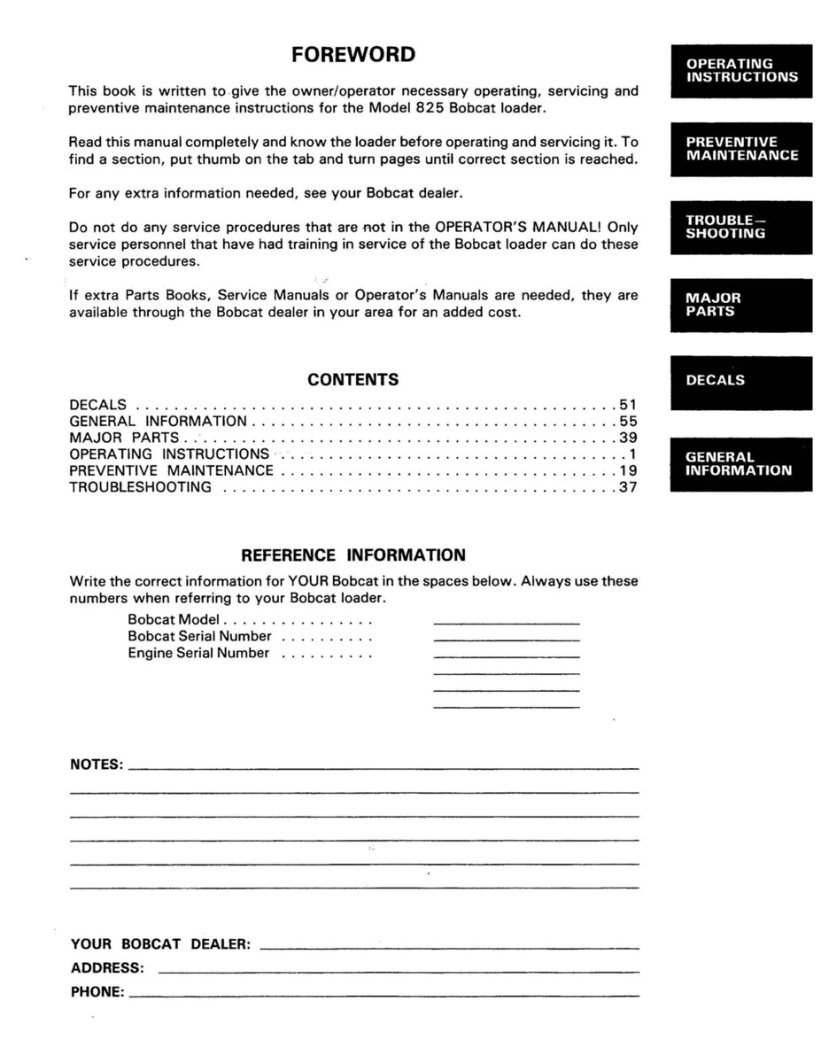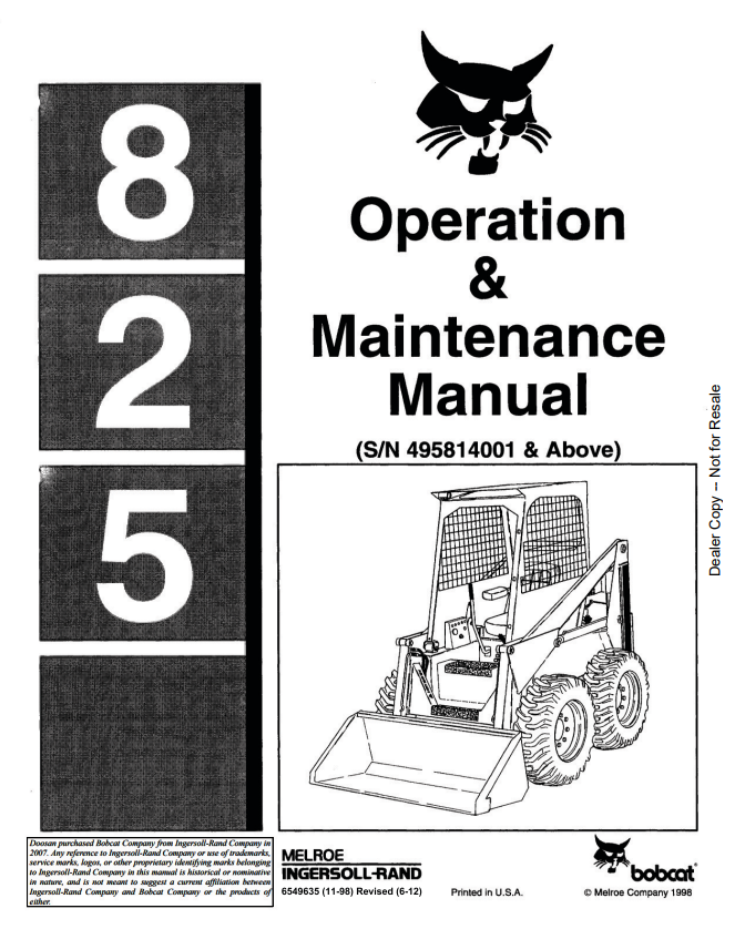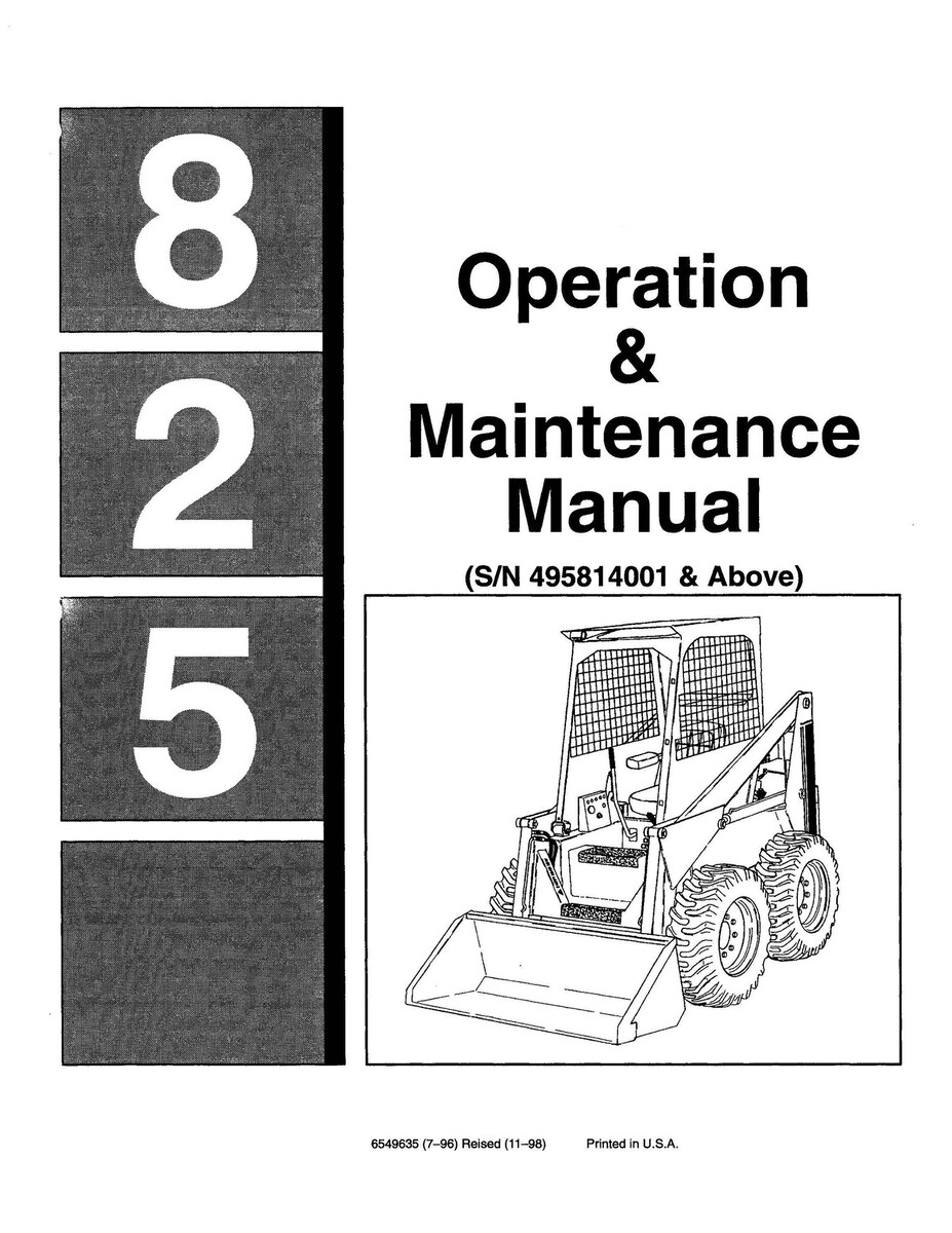 Bobcat - 825 Skid Steer Loader Technical Workshop & Operator Instruction Manual