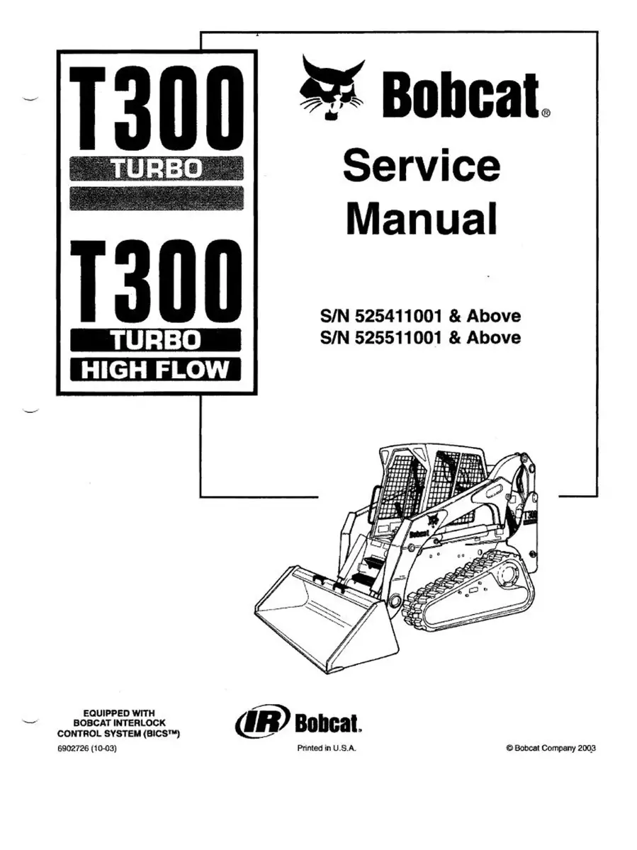 Bobcat T300 | T300 Turbo | T300 Turbo High Flow Skid Steer Service Repair Manual
