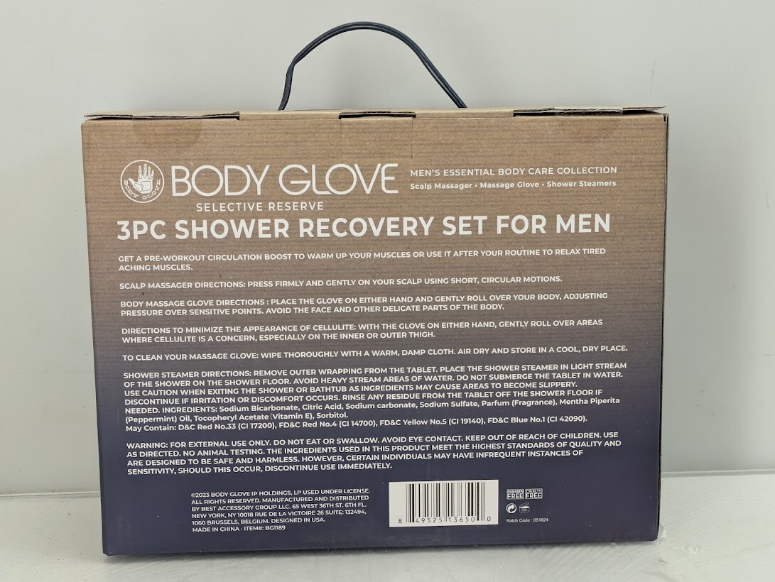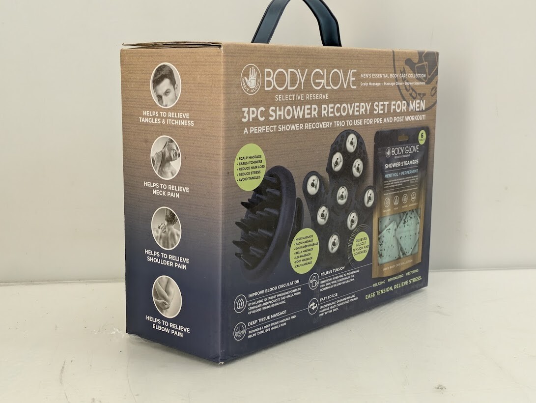 - Body Glove 3 PC Shower Set Scalp Massager, Massage Glove, Shower Steamers Set