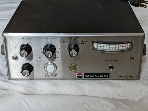 In vendita c'e un preamplificatore Bogen usato RTP-1 RTP1 50 Watt 2 Mic Lear Sieglar Si accende.