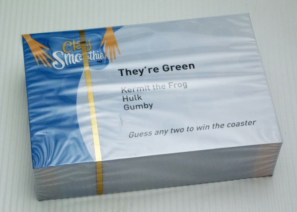 (35) ROUND COASTER CARDS (FIVE CARDS EACH): 5-WHAT NOT, 5 BOUNCERS. 5-HUM PUNCH, 5-MIME TWIST, 5-CLAY SMOOTHIE, 5-STRAIGHT UP, 5-WILD.