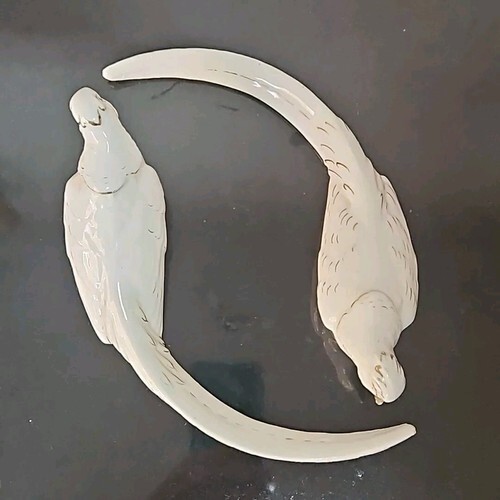 Pair of 1940's vintage ceramic intertwined love bird figurines