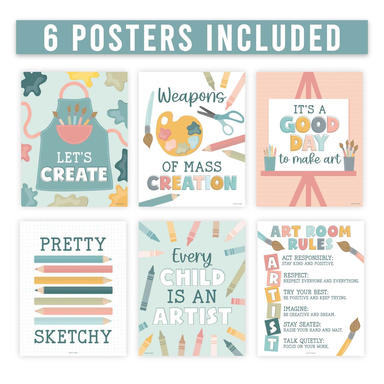 Create A Classroom Everyone Talks About; You'll receive 6 different 11x14 inch motivational art posters, so your class will never be boring again, Become the talk of the school with these rainbow colored art room decorations for teachers, art teacher classroom must haves