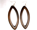 HUGE - X-LARGE - BIG BOLD SIZE - REAL SOLID WOOD RICH DARK BROWN COLOR HAND STAINED POINTED OVAL GEOMETRIC SHAPE EARRINGS