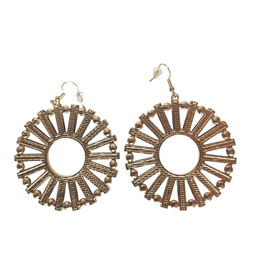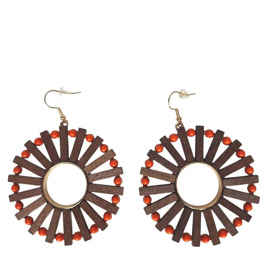 - Boho Brown Wooden Round Statement Beach Dangle Earrings Womens Costume Jewelry