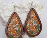 - Boho Fall Flower Wood Teardrop Dangle Earrings