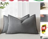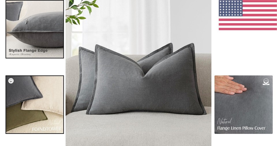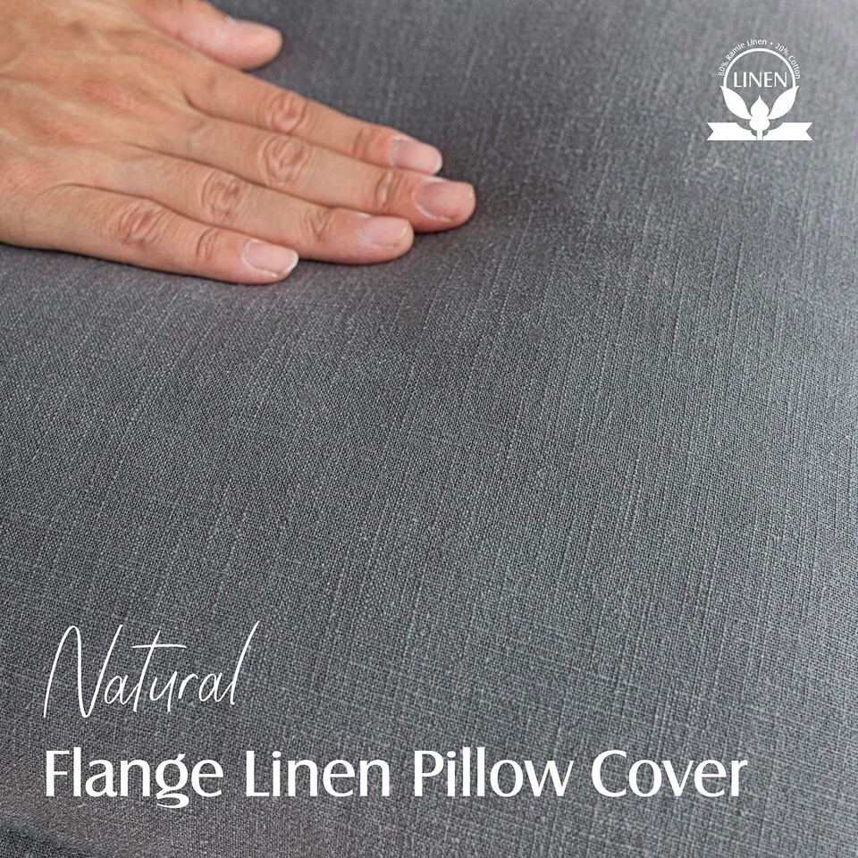 - Boho Farmhouse Flange Edge Pillow Covers - Soft Grey, Set of 2, 12x20 Inches