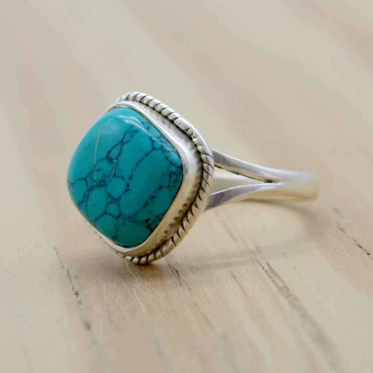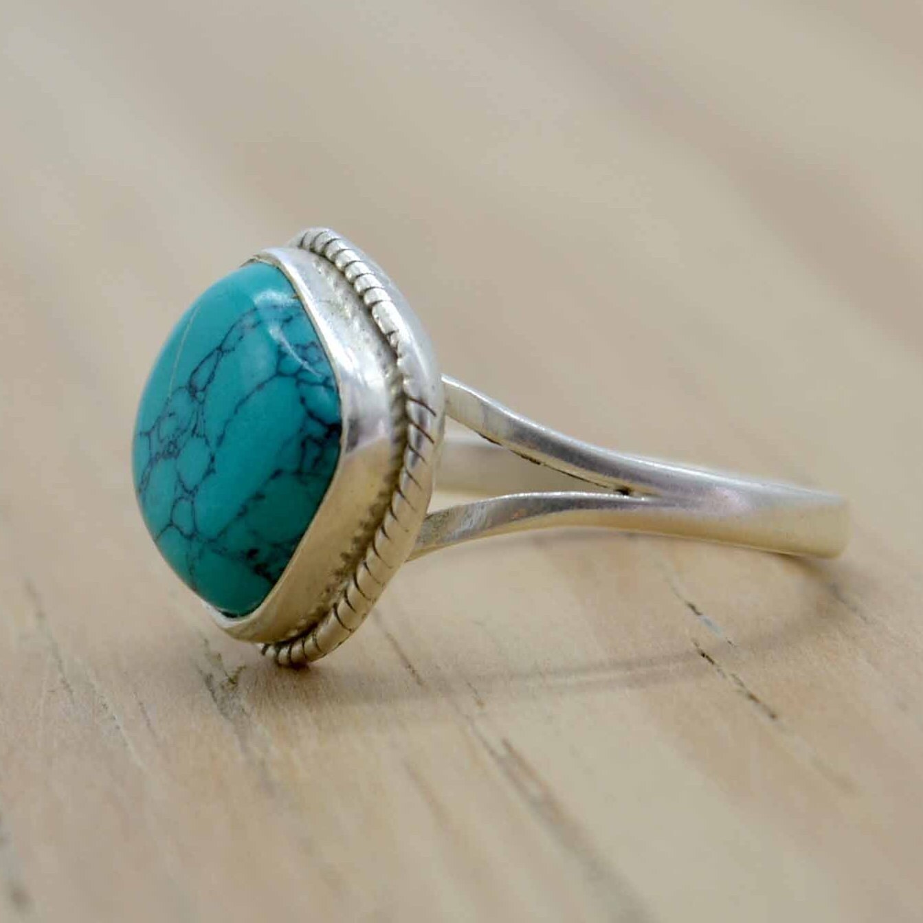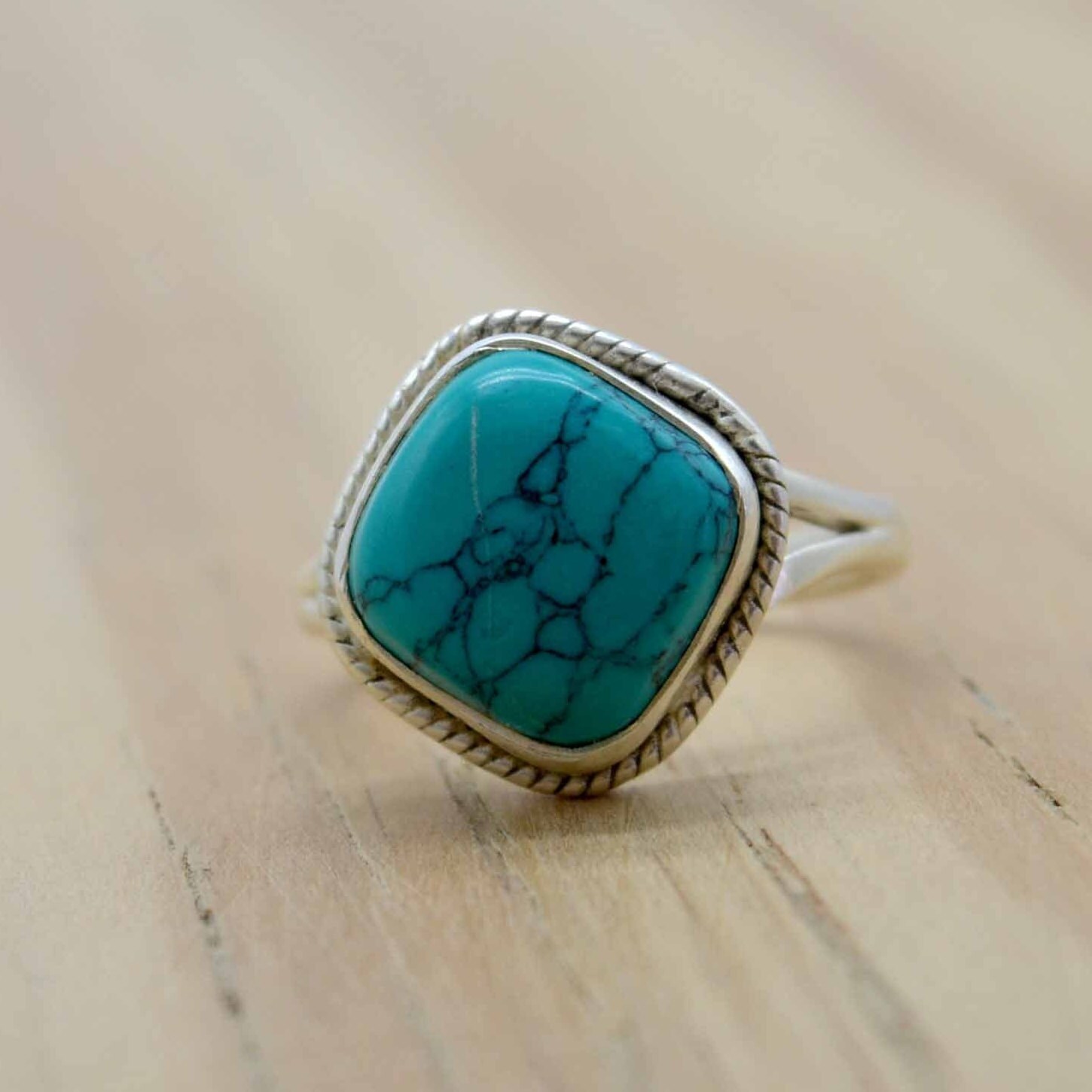 - Boho Turquoise Ring Sterling Silver Women Ring Square Gemstone Ring Handmade