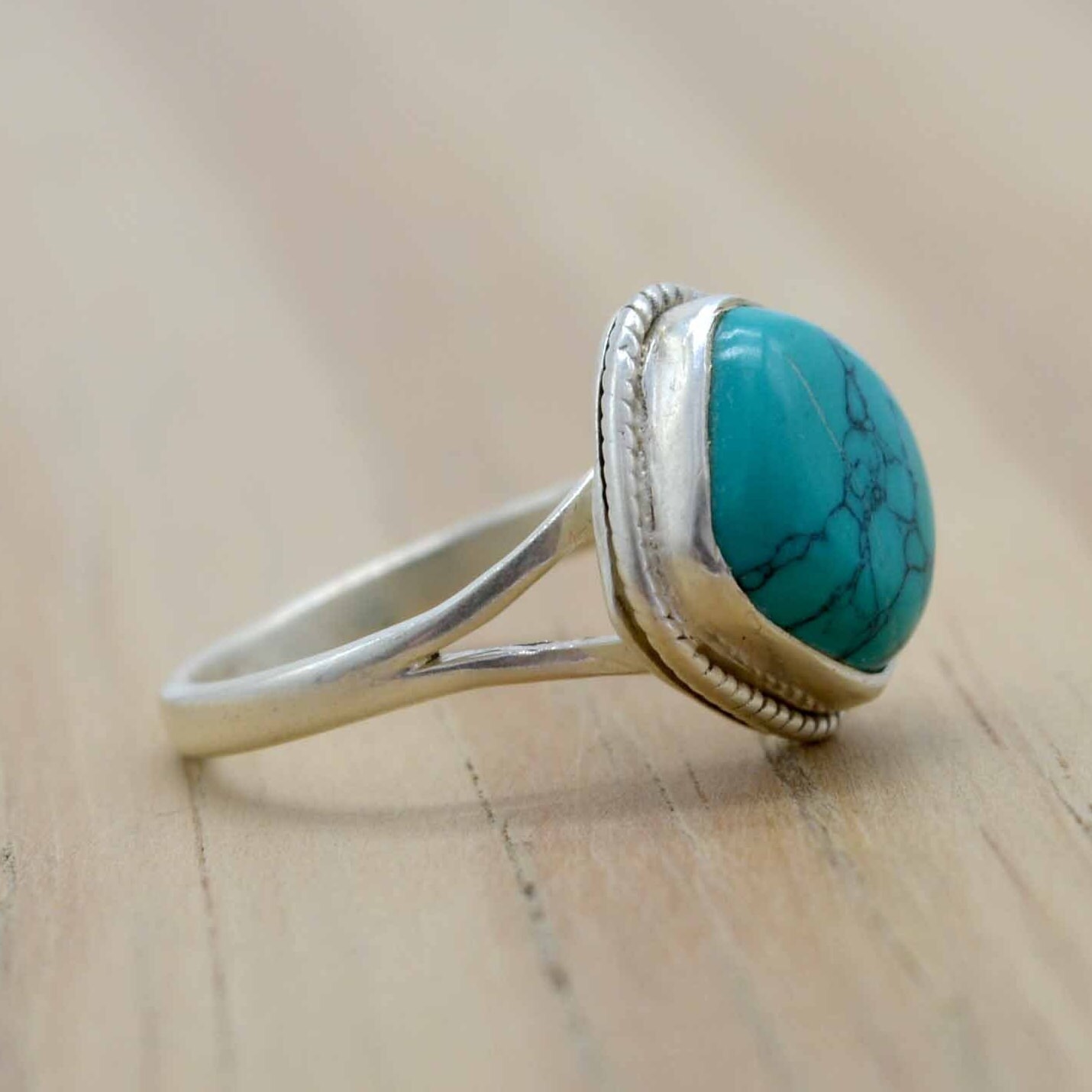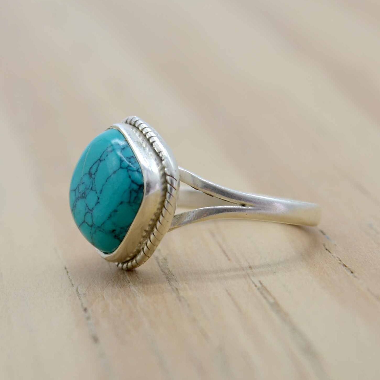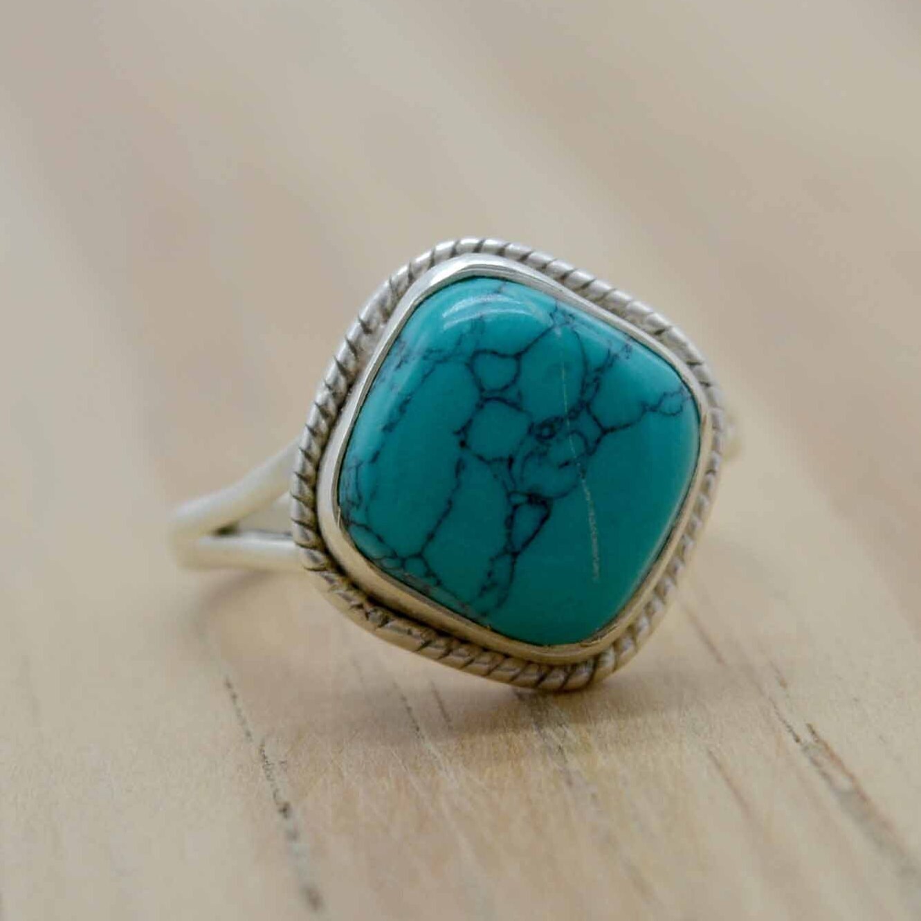 - Boho Turquoise Ring Sterling Silver Women Ring Square Gemstone Ring Handmade