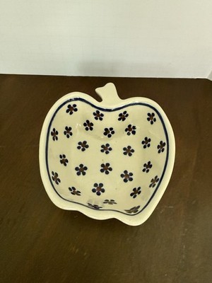 - Boleslawiec Polish Pottery Apple Shaped Floral Trinket Bowl/Dish