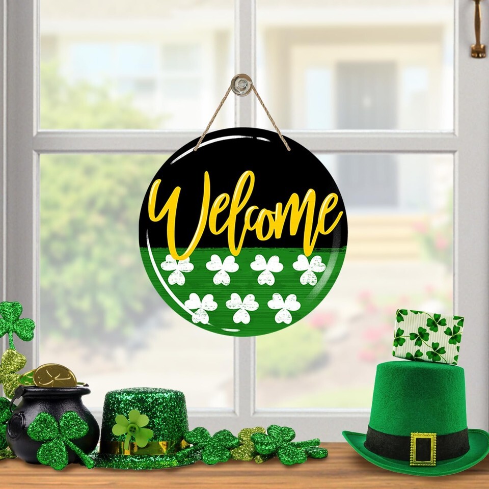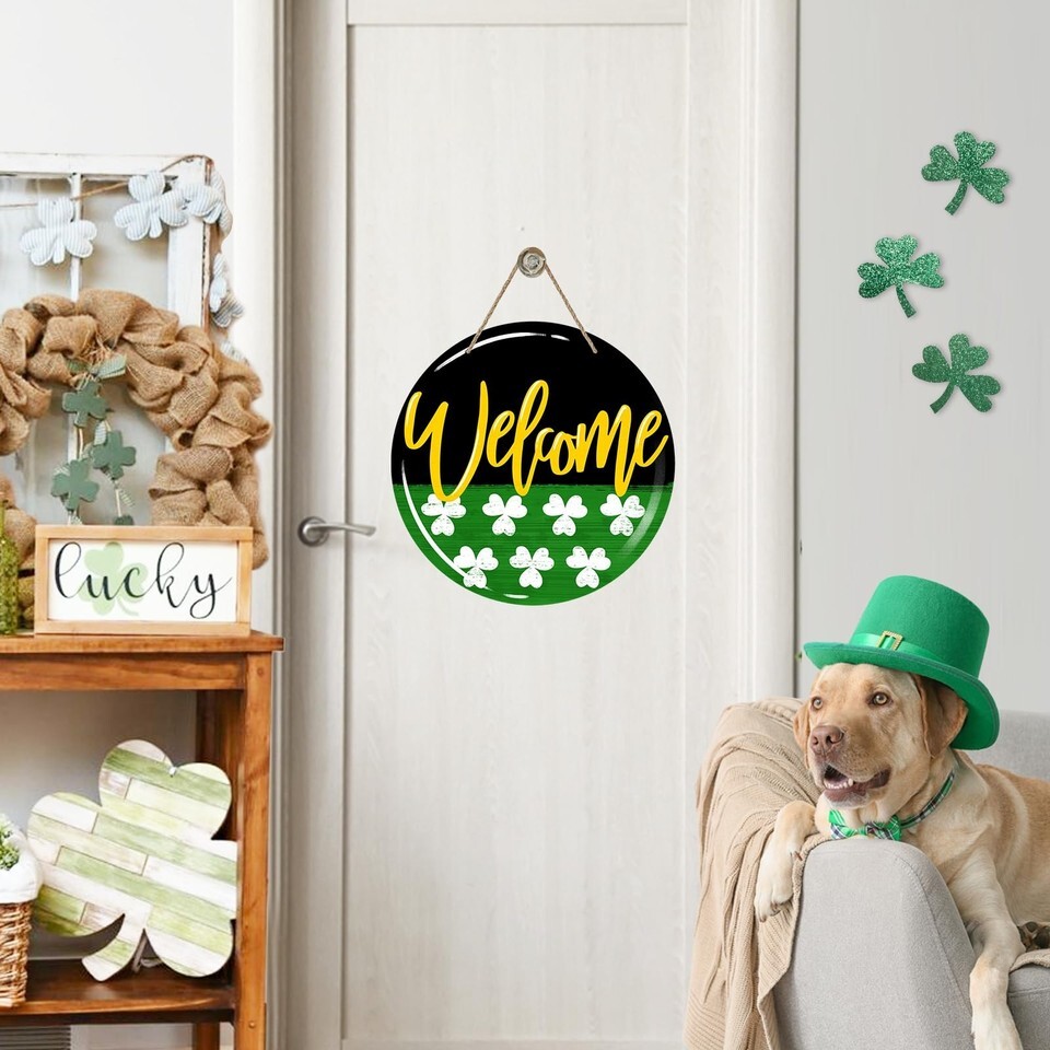 Bolisom St. Patrick's Day Shamrock Wood Door Sign Outdoor Porch Decor