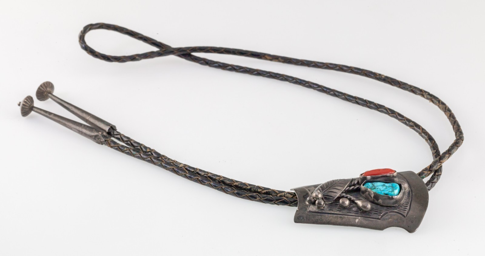 Cravatta Bolo In Pelle Intrecciata Con Argento Sterling, Turchese E Corallo