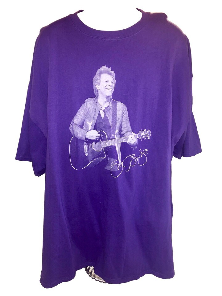 - Bon Jovi Sketch 4XL Purple T Shirt It’s My Life Double Side Graphic Print