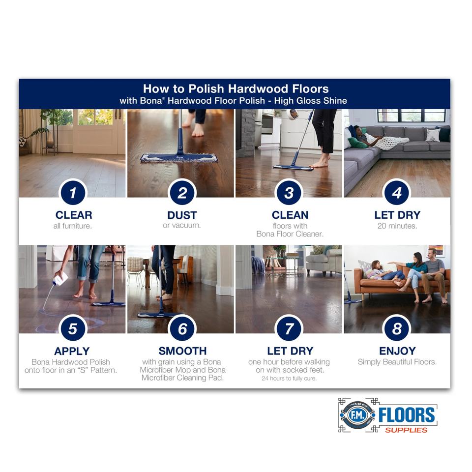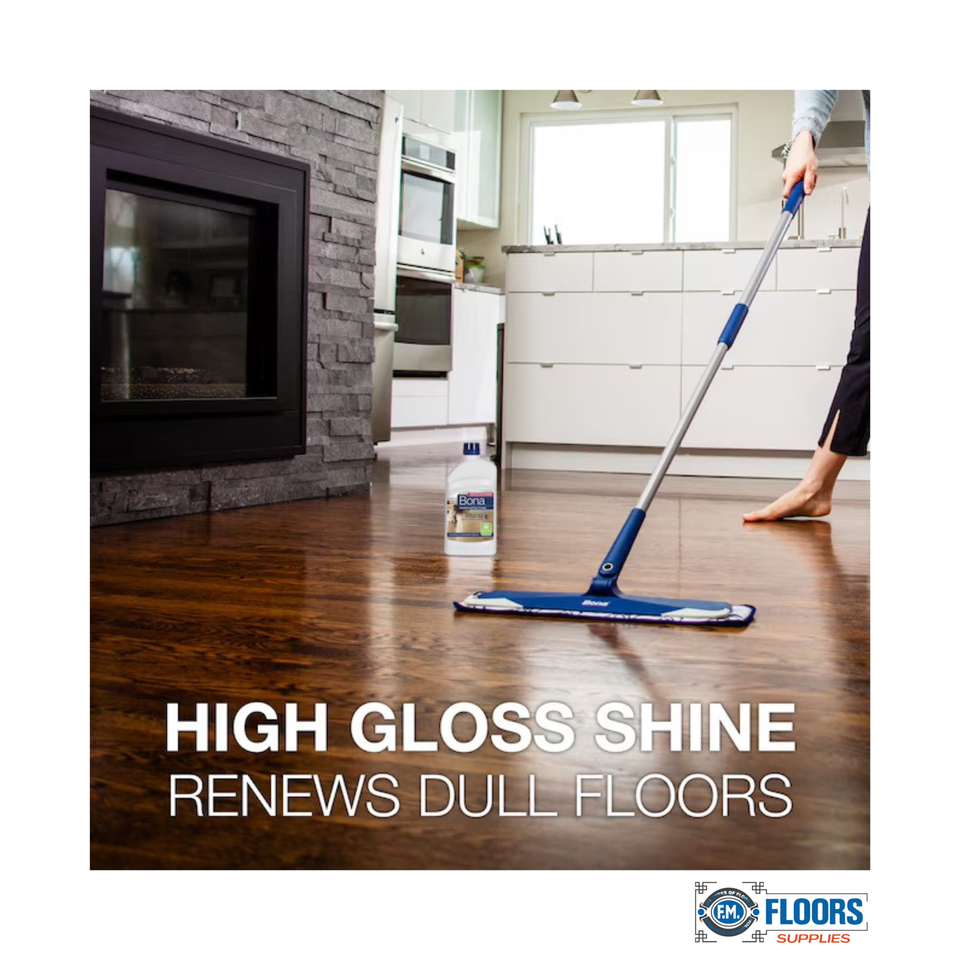 Bona Hardwood Floor Polish offers a protective formula that renews floors by filling in micro-scratches and scuffs, shielding against future wear and traffic, and adding a durable high gloss shine. Use every 2-6 months, depending on foot traffic, to keep floors revitalized and looking their best. This product is not a floor cleaner. SAFE FOR HARDWOOD FLOORS: Designed to be safe for all unwaxed, unoiled, polyurethane finished wood floors HIGH GLOSS SHINE: Bring dull wood floors back to life with a high gloss shine. PROTECT RENEW: Adds a protective layer fills in micro-scratches while evening out the appearance of the floor. COVERAGE RATE BY SQUARE FOOTAGE: 32oz. bottle covers 500 square feet of flooring; GREENGUARD CERTIFIED: Product is certified to GREENGUARD standards for low chemical emissions into indoor air during product usage. Packaging may vary