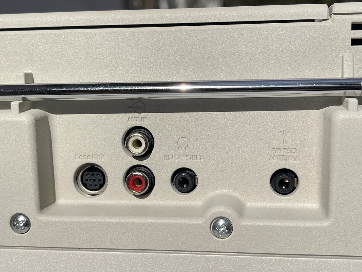 The Bose Acoustic Wave Music System II with 5 Multi-Disc Changer is a sleek and powerful compact stereo system in a stylish gray color. It boasts a CD changer capacity of 5 discs, allowing for uninterrupted listening of your favorite music. With AM/FM radio capabilities and stereo L/R RCA audio outputs, this unit offers a versatile listening experience. The included remote and manuals make it easy to control and use, making it a convenient and high-quality addition to any home audio setup.