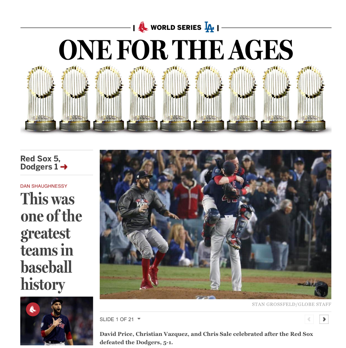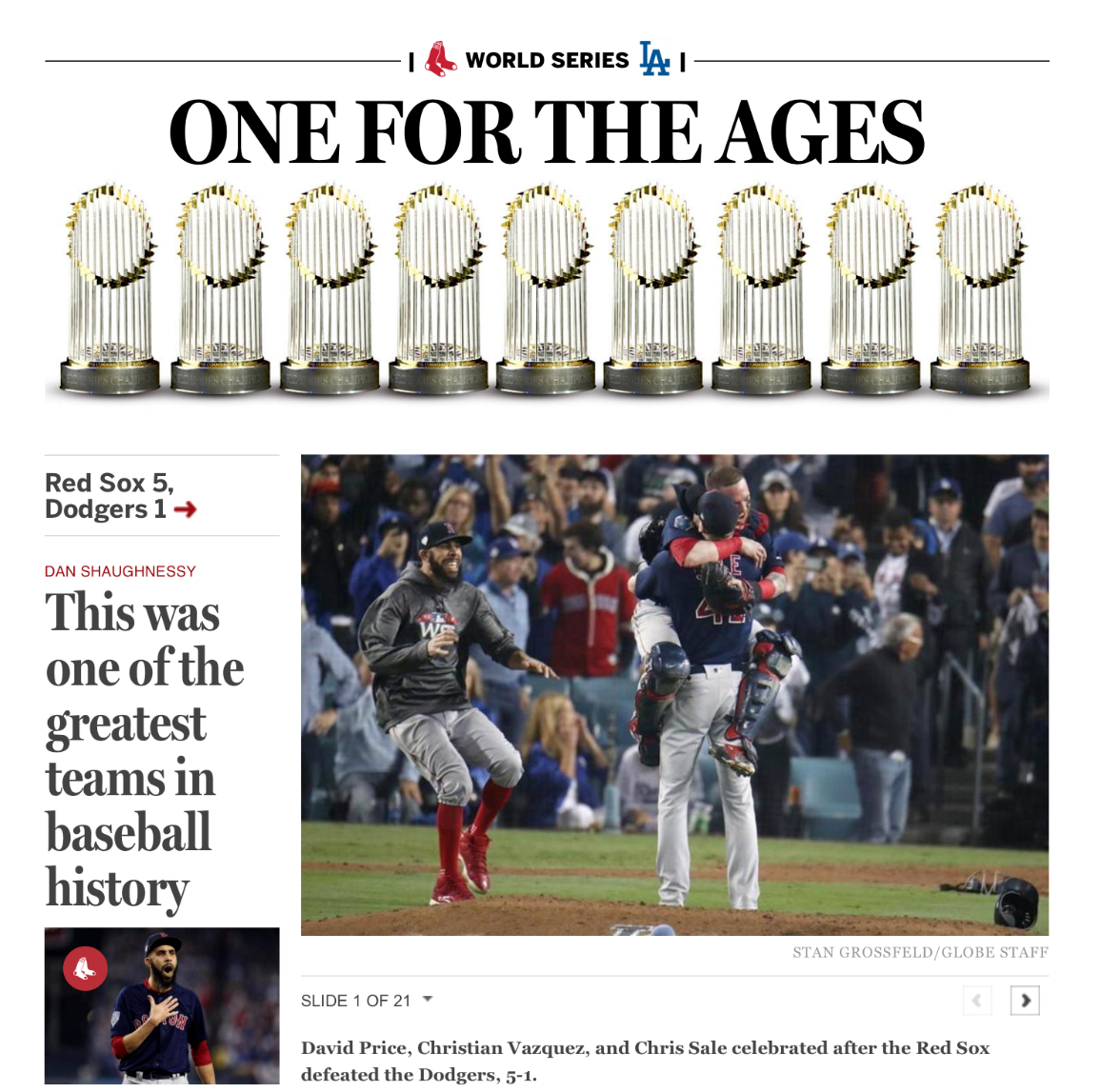 - Boston Red Sox 2018 World Series Champions Globe Newspaper 10/29/18