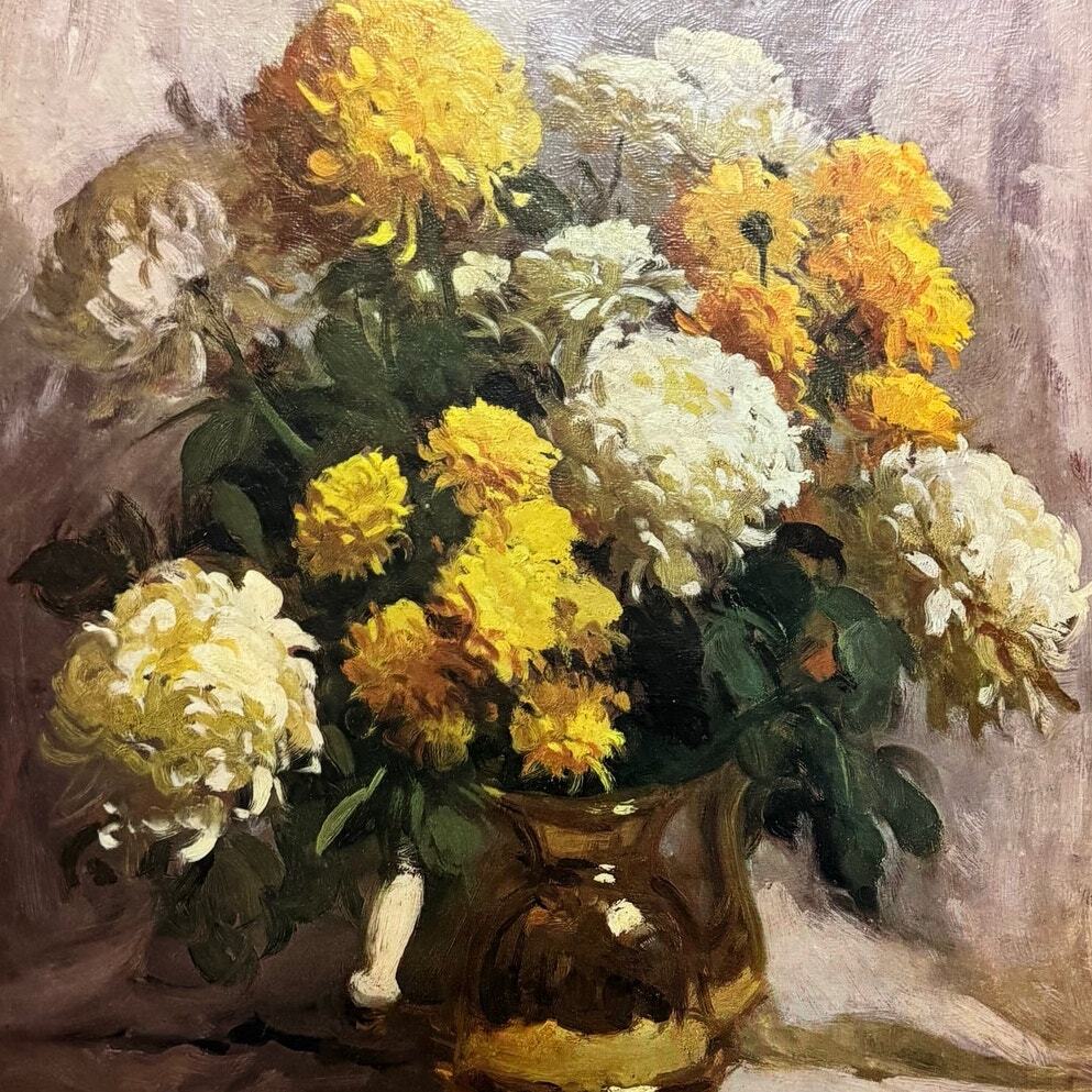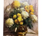 - Bouquet in Brass Yellow Flowers Vase Lithograph Art Mid Century Modern 16x20