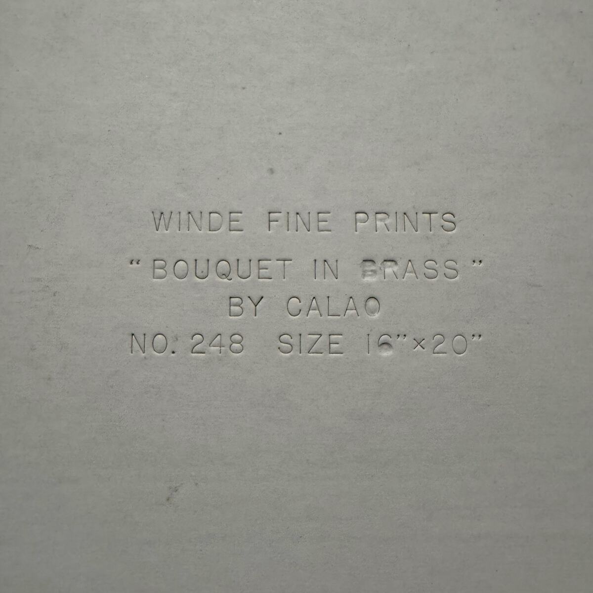 info on back: Winde Fine Prints "Bouquet in Brass" by Calao No. 248 Size 16x20"