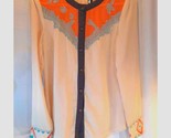 Boutique Women's Button Up Shirt Multicolor Long Sleeve Lace Embroidered Cuff S