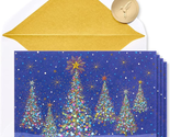 Papyrus Holiday boxed cards feature watercolor trees with foil, packaged with lined envelopes and gold seals. Perfect for sending Christmas cards to friends, family or anyone this holiday season.