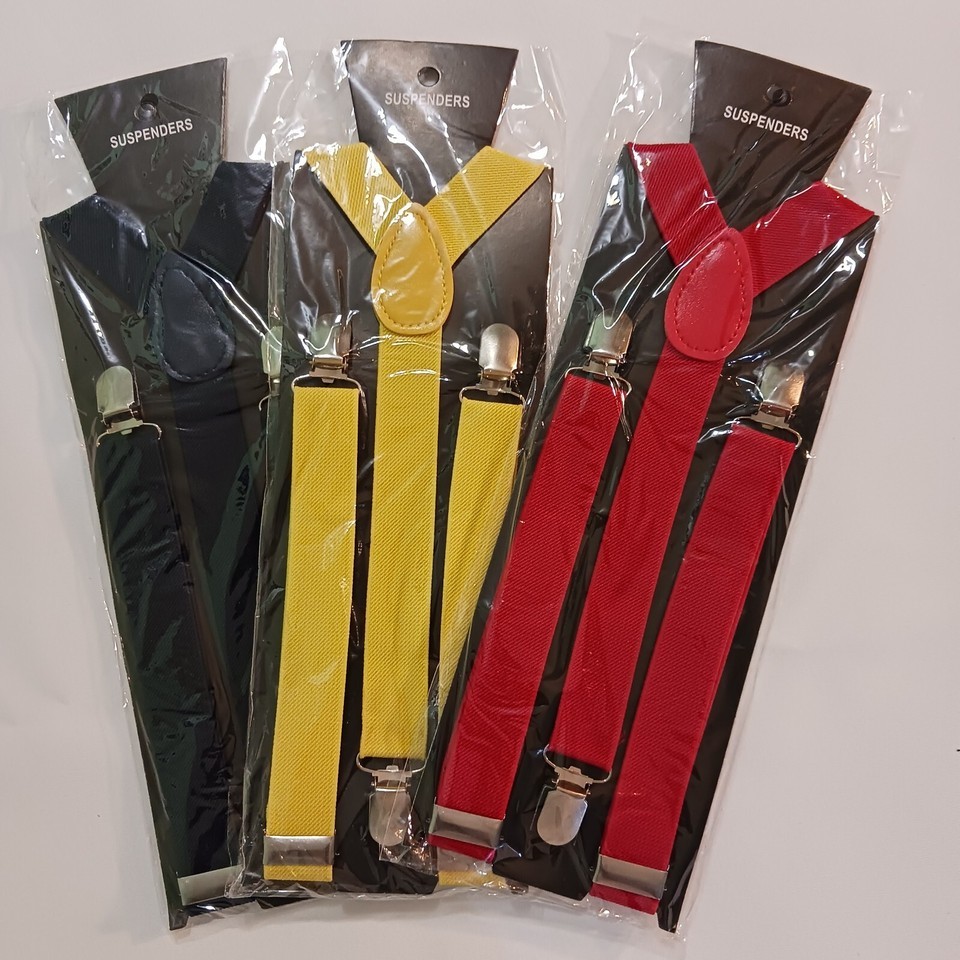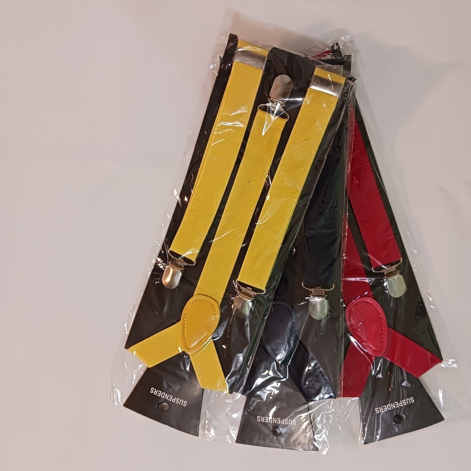 Add a pop of color to your little boy's outfit with these 3-piece clip suspenders. The set includes navy blue, yellow, and red suspenders with extendable metal clip fastenings, perfect for any occasion. Made with durable metal material, these suspenders are a great addition to any boy's accessory collection.