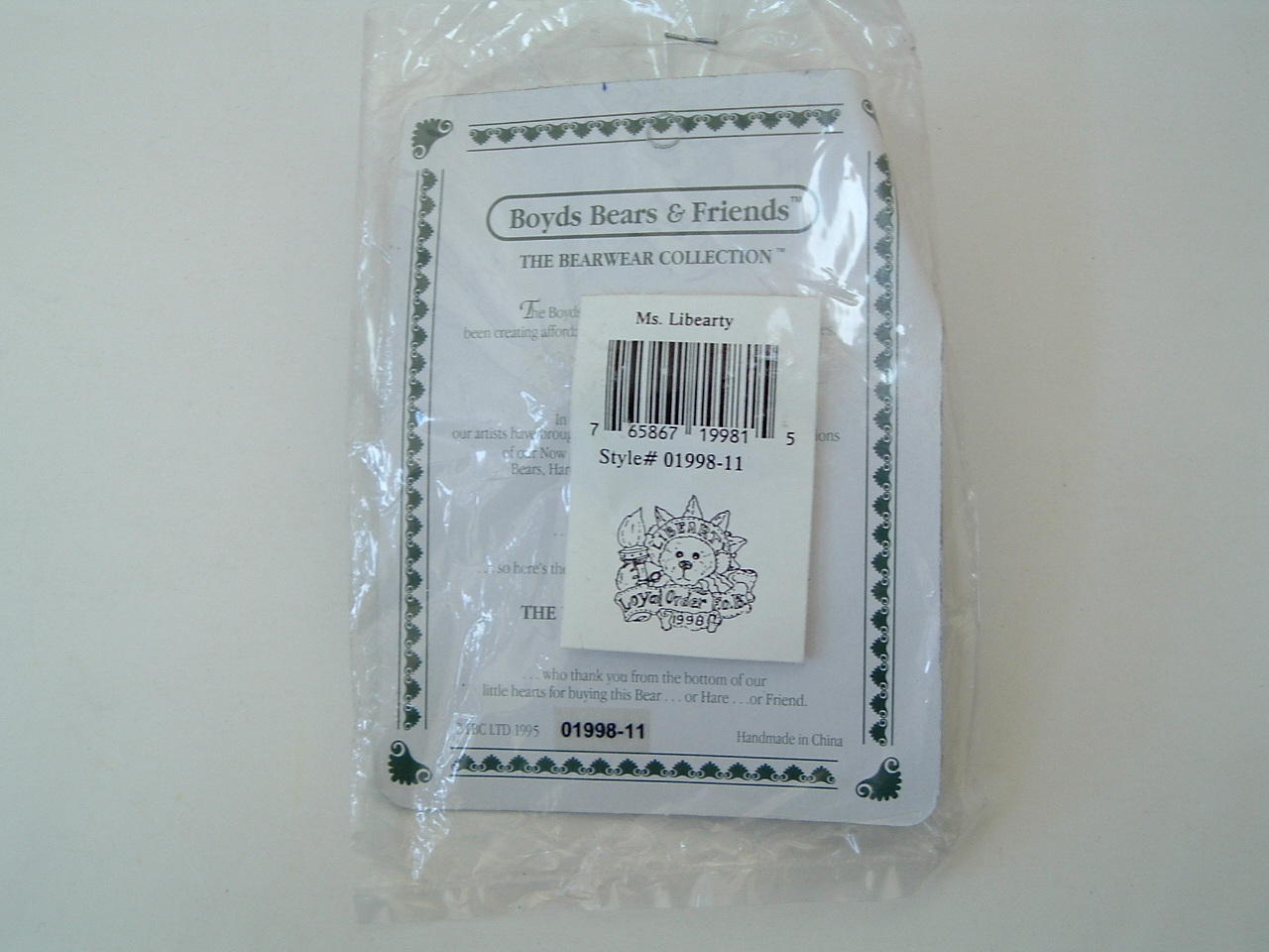 Boyds Bearwear Ms Libearty 1998 FOB Resin Pin
