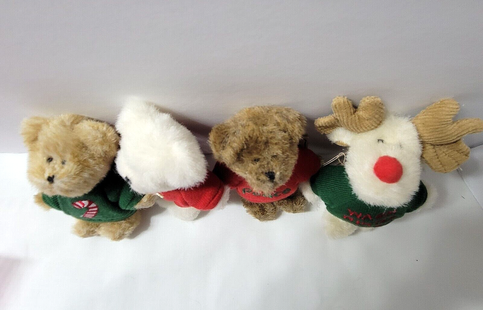 New with Tags, nice group of 4 Christmas / Winter message plush from Boyd's!