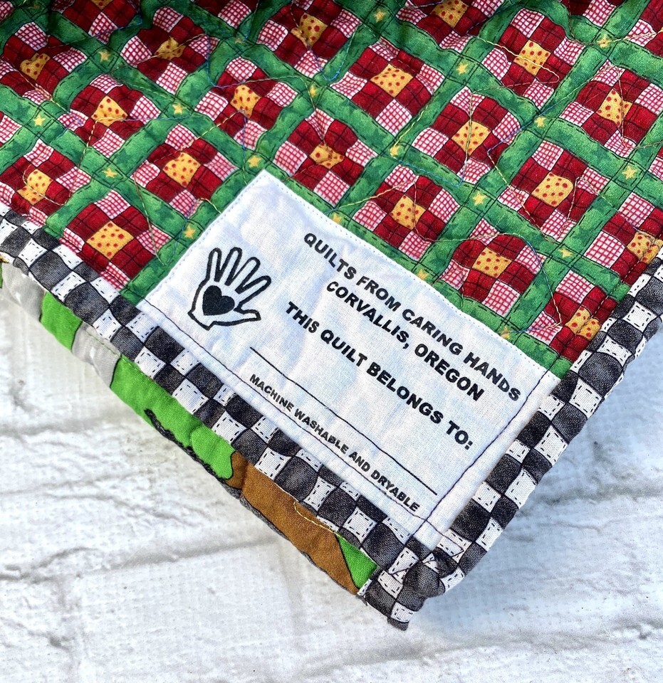 The patch shows that it was handmade for a charity. I purchased it at a thrift store. It was made to be loved and enjoyed. I will be donating a portion to charity.