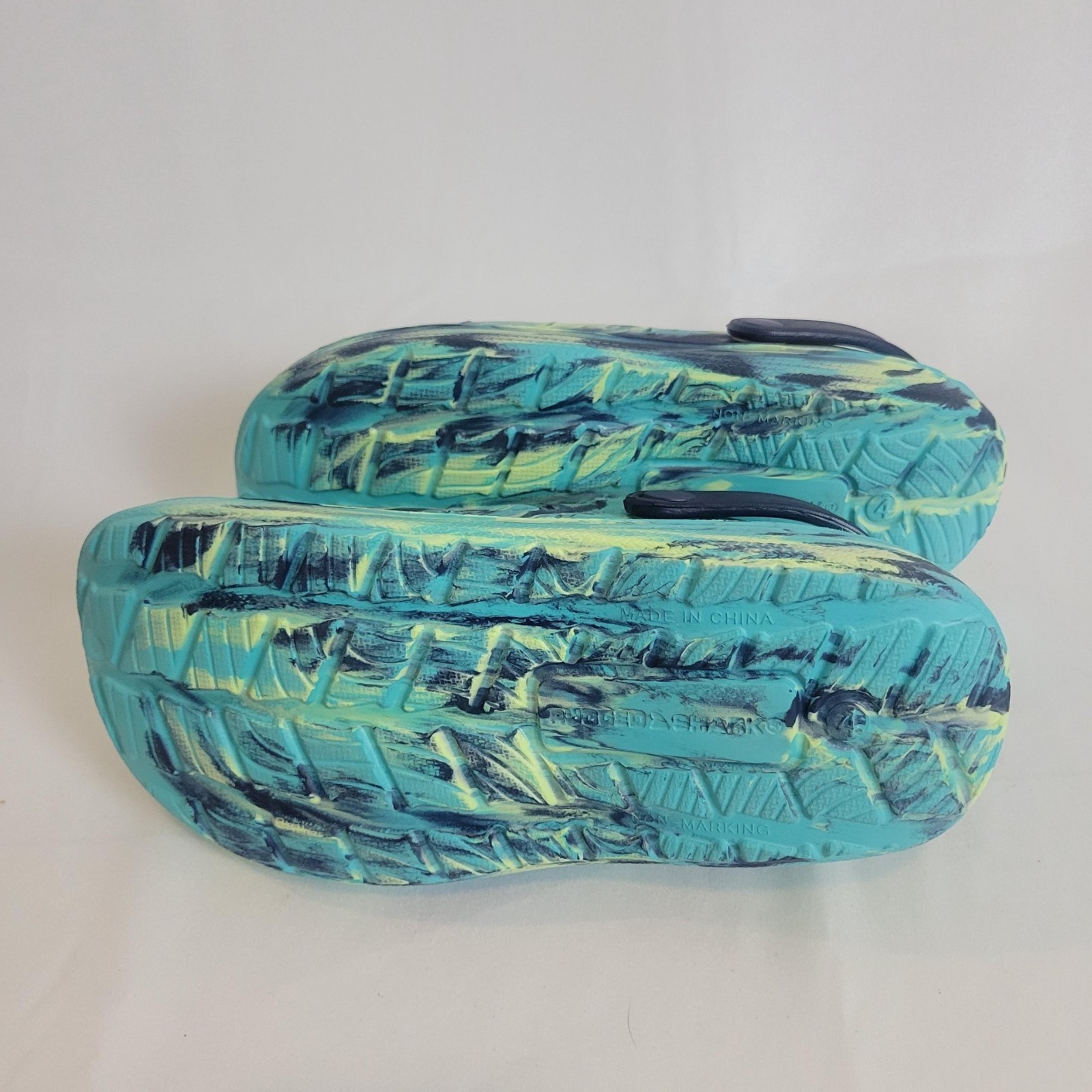 - Boys Size 4 Rugged Shark Eva Clog Slip On Shoes NWOT Comfort Blue Teal Swirl