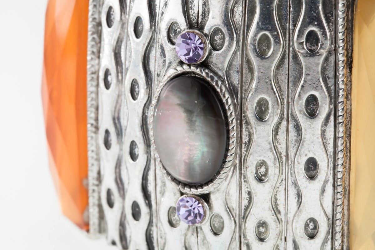 Bracciale Costume Stretch Con Cristalli Colorati E Finta MOP Nera Larga 39 Mm