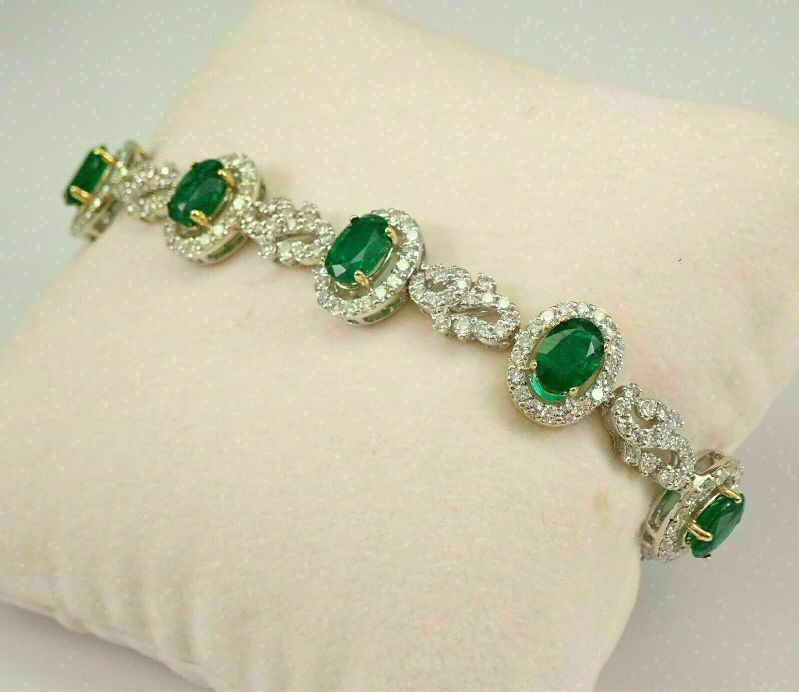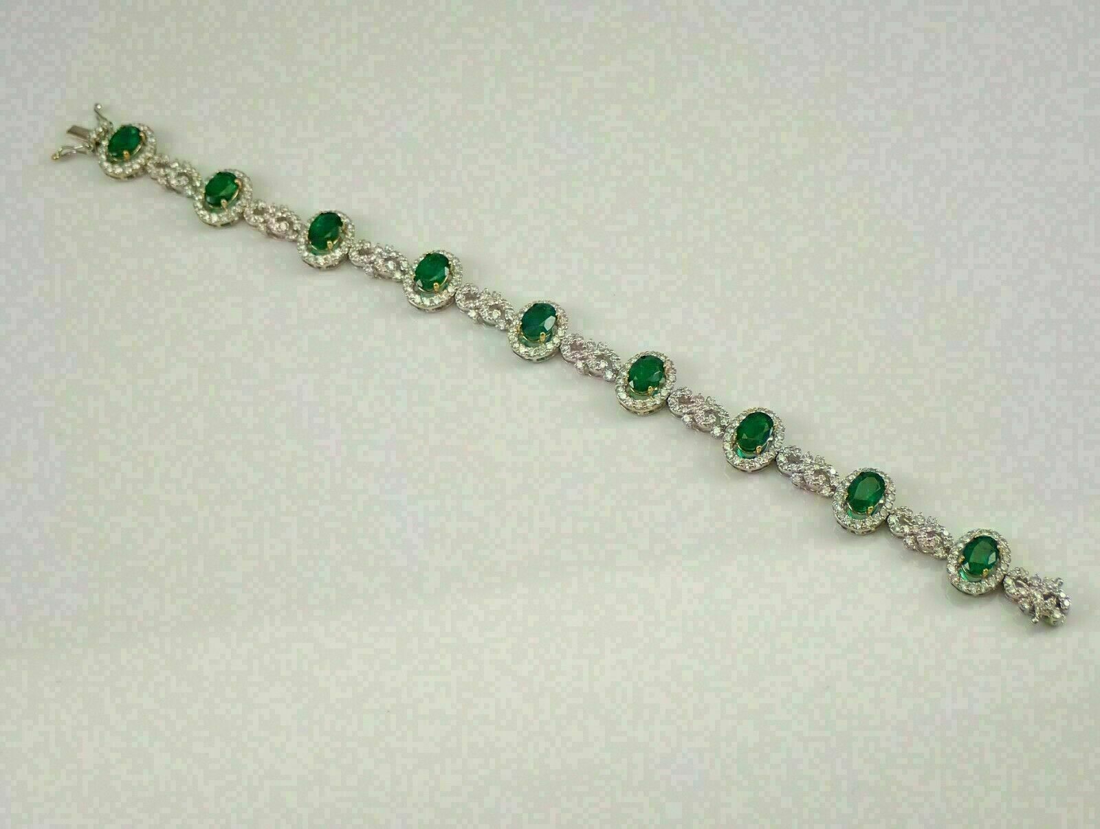 - Bracciale tennis Halo con smeraldo simulato a taglio ovale da 8,00 carati,...