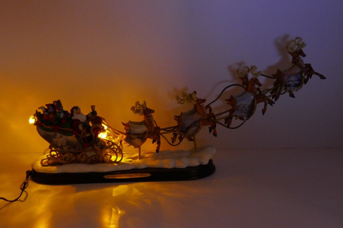 - Bradford 2004 Thomas Kinkade Night Before Christmas Illuminated Santa Sleigh