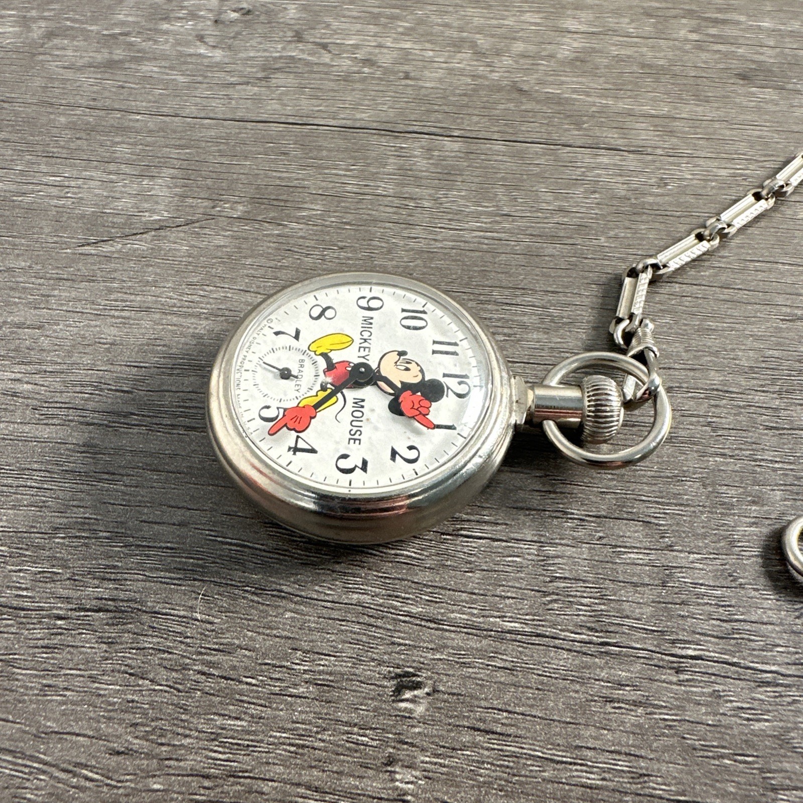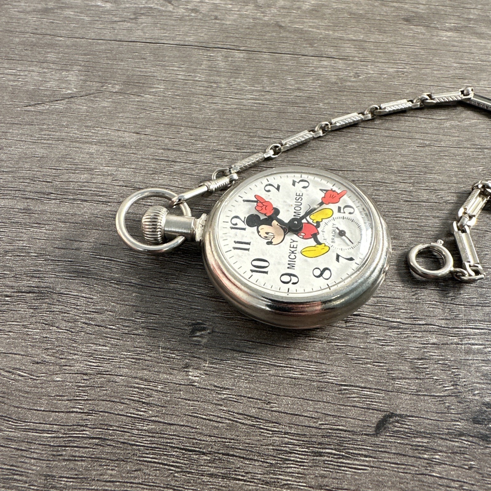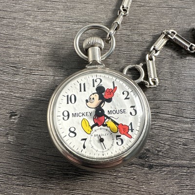 - Bradley Mickey Mouse Pocket Watch Mechanical Wind Up Vintage
