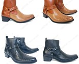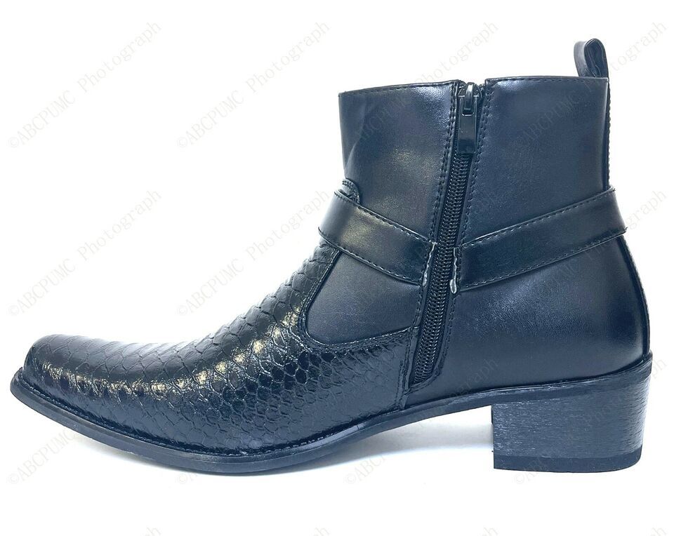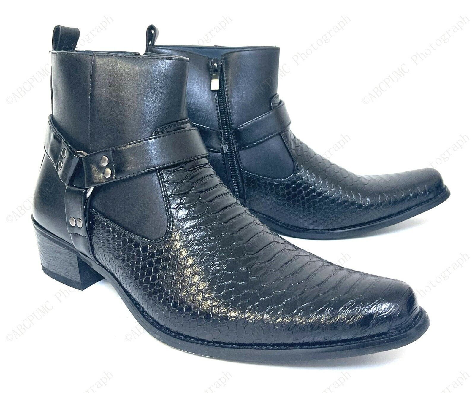 - Brand New Men's Cowboy Boots Western Snakeskin Print Ankle Harness Strap Zipper