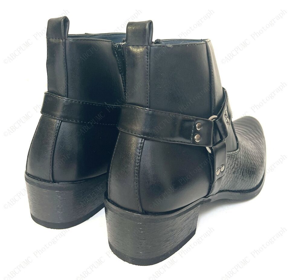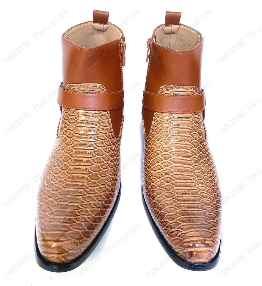 Brand New Men's Cowboy Boots Western Snakeskin Print Ankle Harness Strap Zipper