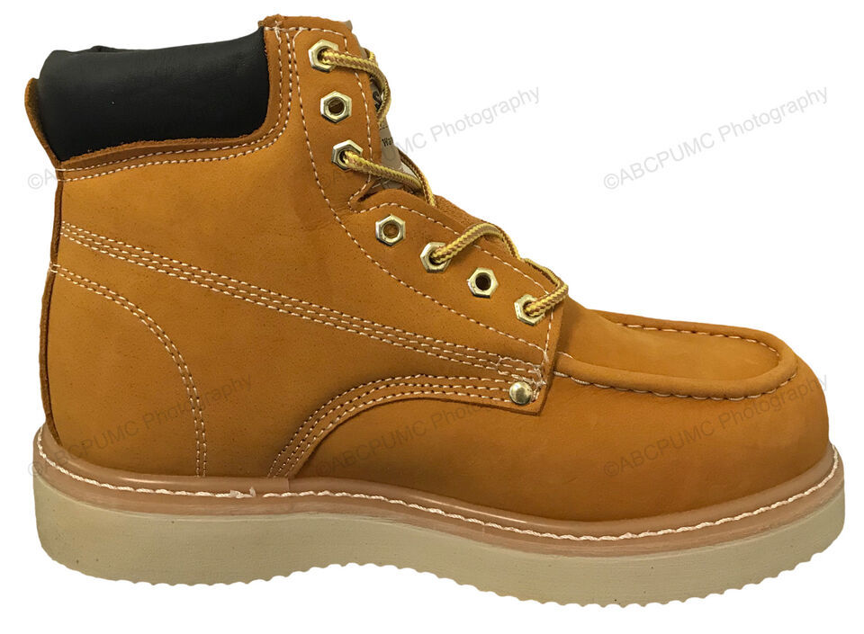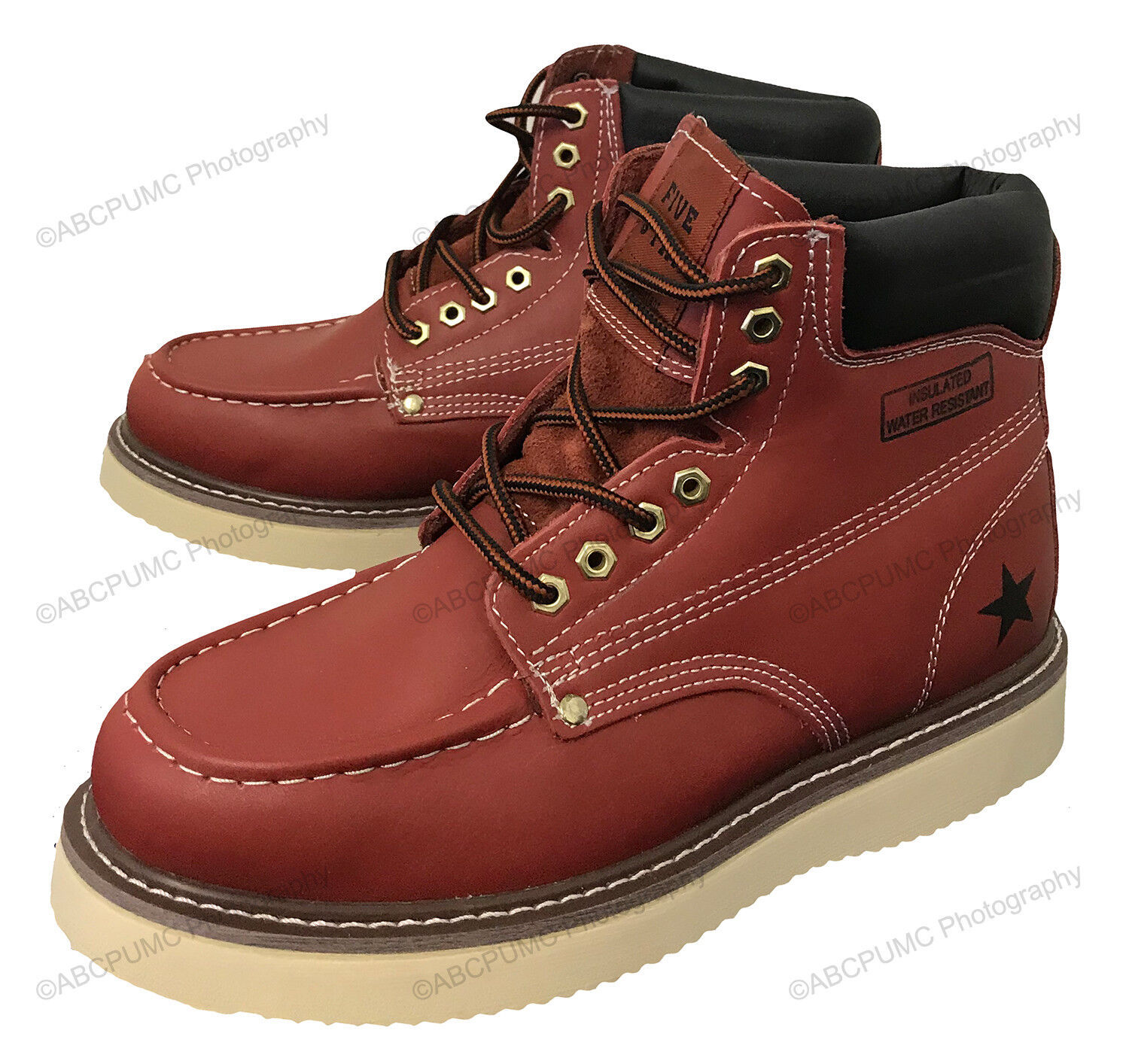 New With Box Men's Moc Toe Boots 6" Leather Wedge Tred Sole Lace Up Water / Oil Resistant Insulated Roofing Shoes Sizes: 6-15