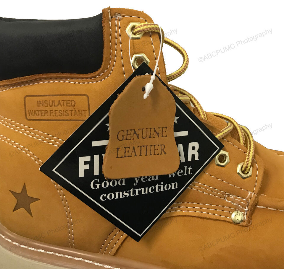 Genuine Leather Upper, Goodyear Welt Construction, Moc-Toe, Triple-Stitching Detail, Rubber-EVA Traction Tred Wedge Outsole, Insulated, Oil Slip Resistant, Shock Absorption Cushioned Insole