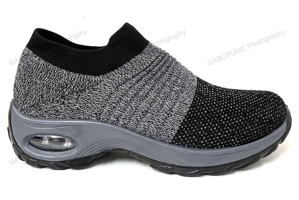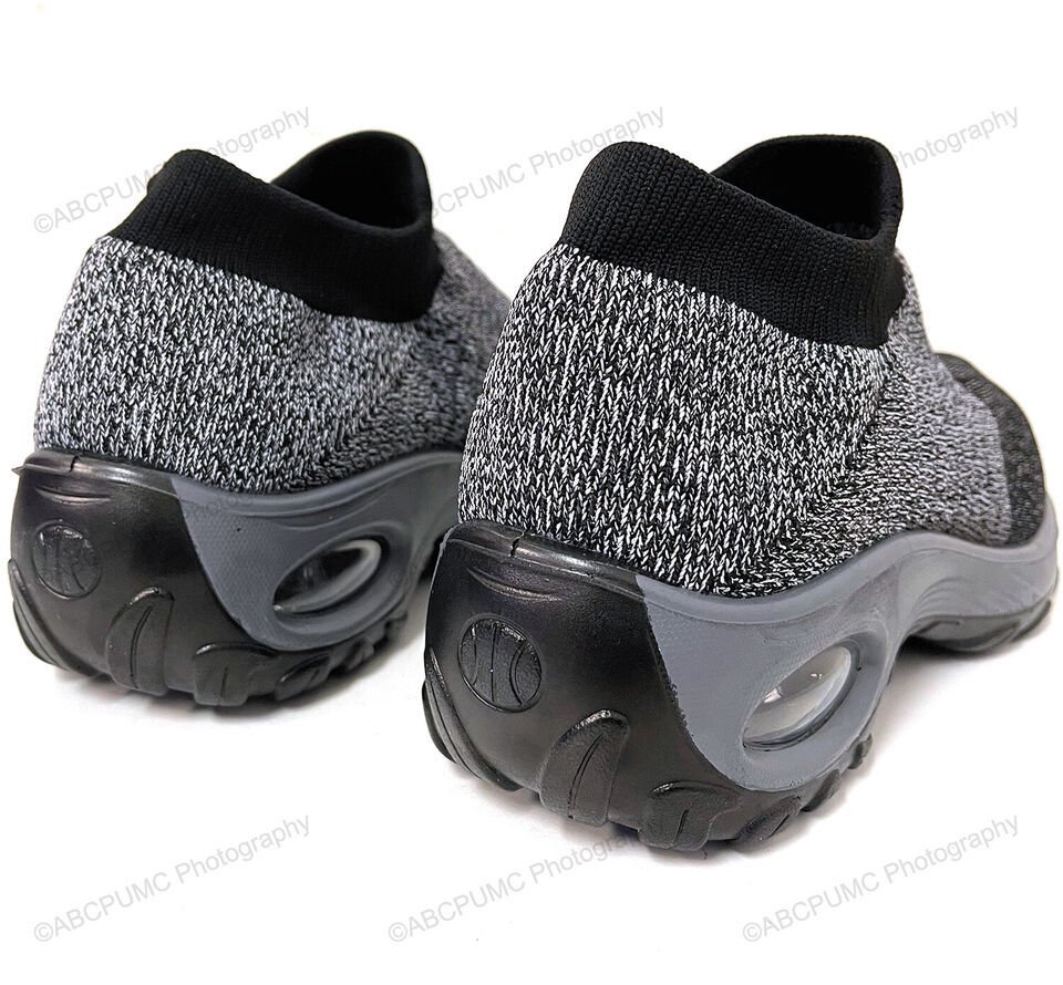 Knit Mesh Upper, Air Cushion Sole, Slip on design with Elastic Cuff
