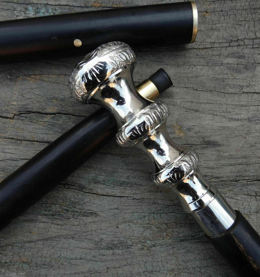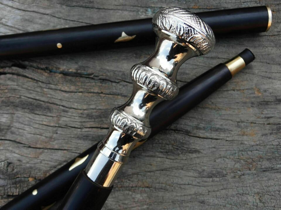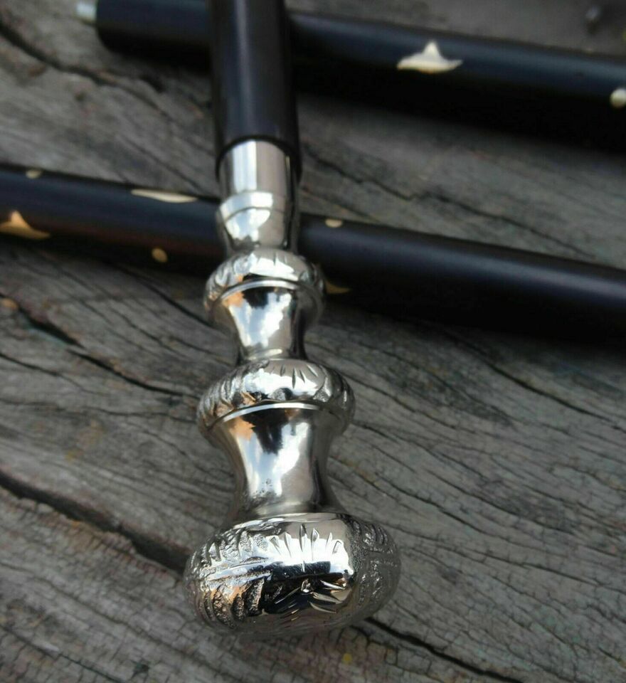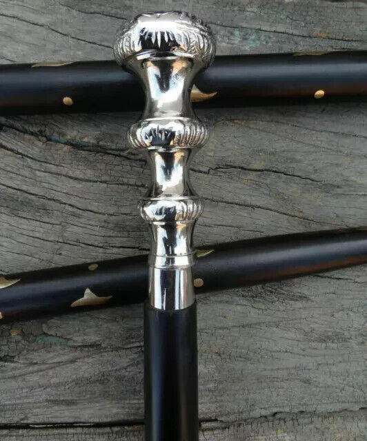 - Brass Designer Victorian Style Silver Handle Wooden Vintage Walking Cane Stick