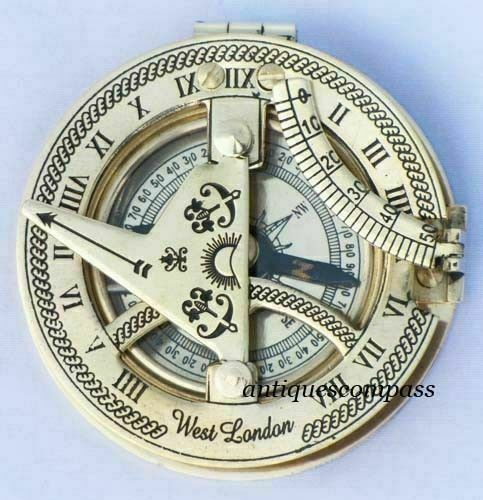 - Brass Nautical Marine Sundial Working Compass-WEST LONDON Replica Gift Decore