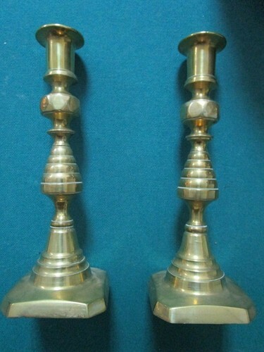 1- 1959 USA Brass Candlesticks 11" Push Up MID CENTURY Beehive 8"