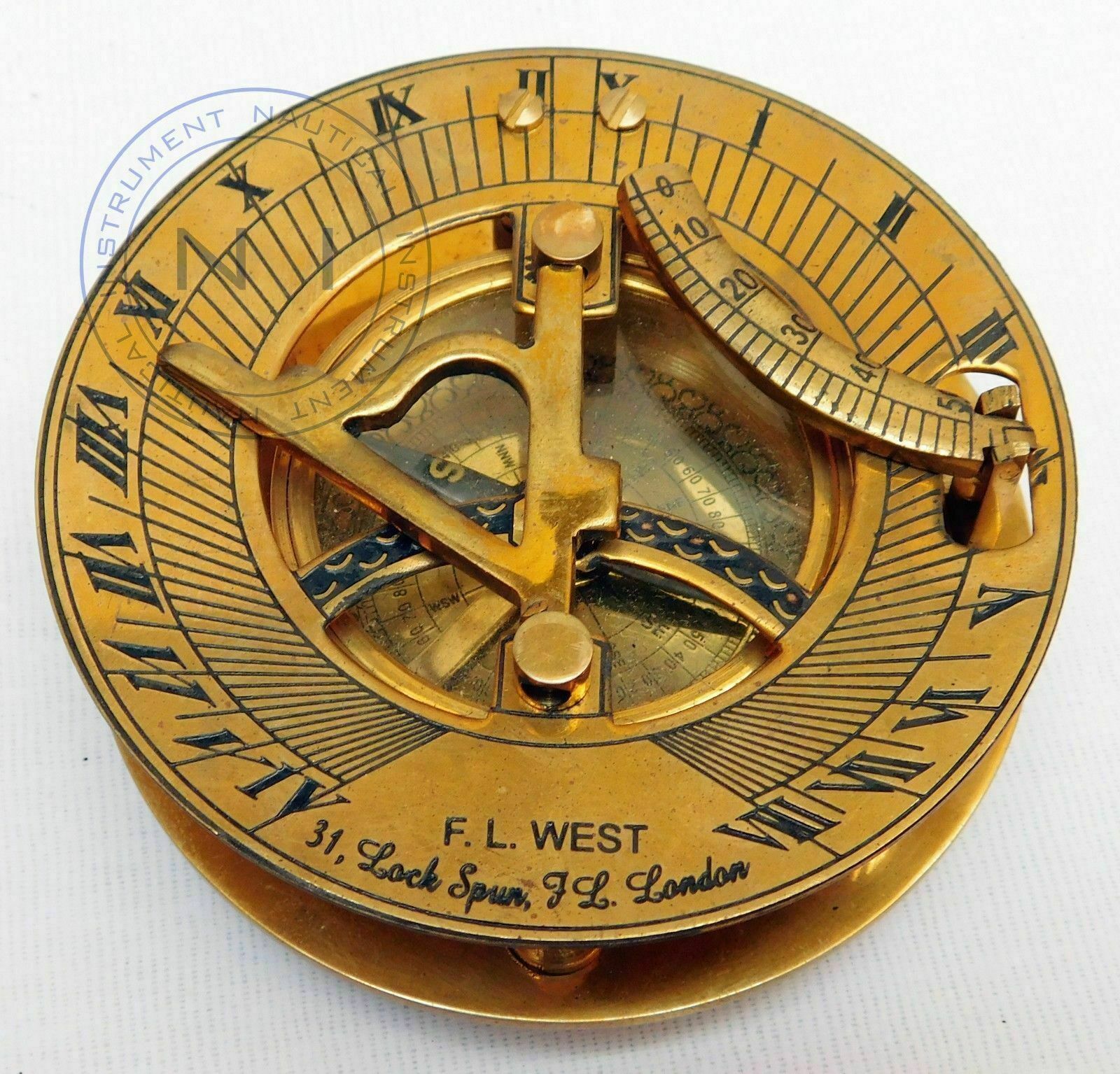 - Brass Sundial Compass Antique Brass Pocket Compass Lock Spun Marine