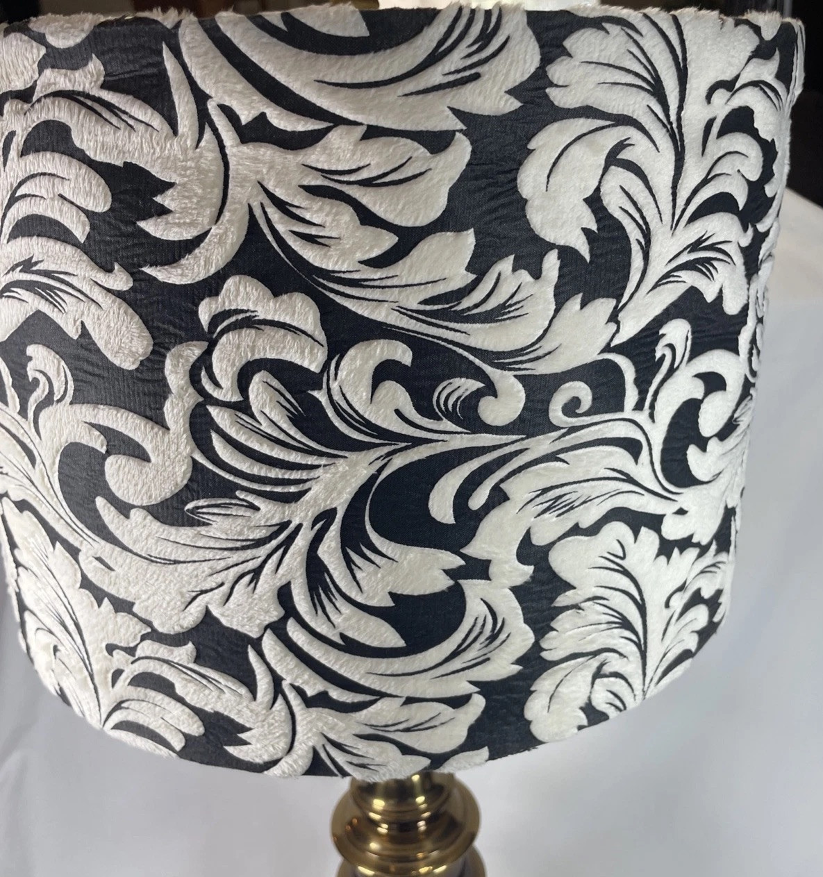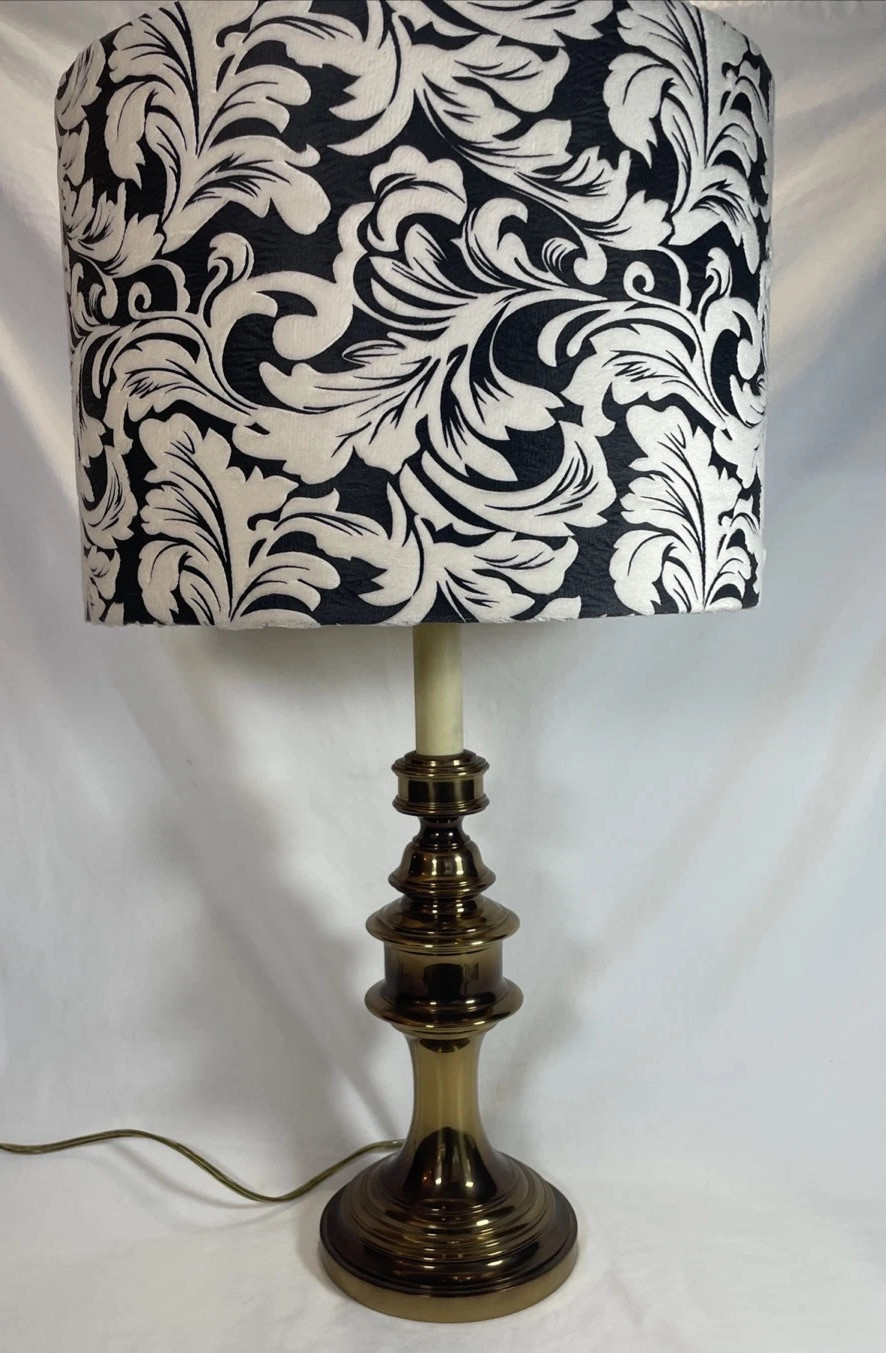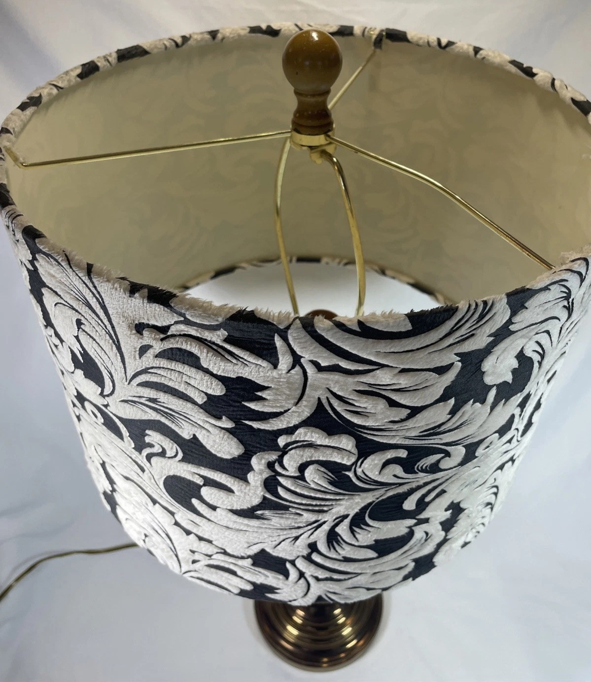 - Brass Table Lamp Vintage With Black And Off White Shade