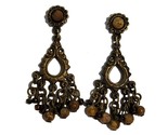 - Brass Tone Dangle Earrings with Brown Beads Boho Gypsy Chandelier Style